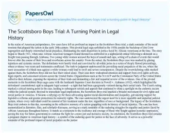 The Scottsboro Boys Trial: A Turning Point in Legal History. (2024, Jun 17). Retrieved from https://hub.papersowl.com/examples/the-scottsboro-boys-trial-a-turning-point-in-legal-history/
