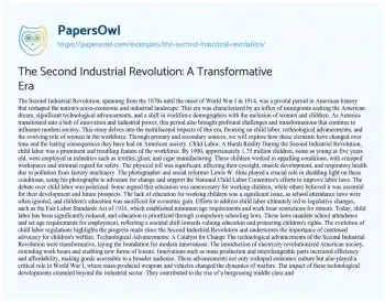 The Second Industrial Revolution: A Transformative Era. (2019, Jul 06). Retrieved from https://hub.papersowl.com/examples/the-second-industrial-revolution/