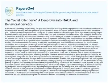 The "Serial Killer Gene": A Deep Dive into MAOA and Behavioral Genetics. (2023, Oct 10). Retrieved from https://hub.papersowl.com/examples/the-serial-killer-gene-a-deep-dive-into-maoa-and-behavioral-genetics/