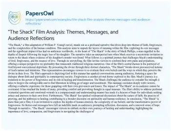 "The Shack" Film Analysis: Themes, Messages, and Audience Reflections. (2024, Mar 25). Retrieved from https://hub.papersowl.com/examples/the-shack-film-analysis-themes-messages-and-audience-reflections/