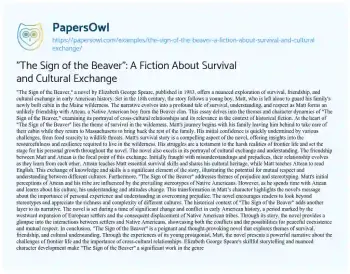 "The Sign of the Beaver": A Fiction About Survival and Cultural Exchange. (2023, Nov 24). Retrieved from https://hub.papersowl.com/examples/the-sign-of-the-beaver-a-fiction-about-survival-and-cultural-exchange/
