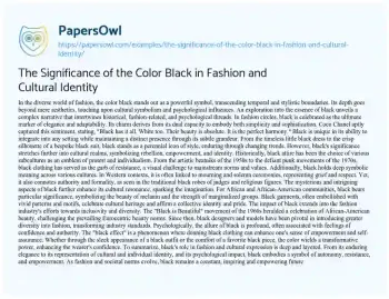 The Significance of the Color Black in Fashion and Cultural Identity. (2024, May 12). Retrieved from https://hub.papersowl.com/examples/the-significance-of-the-color-black-in-fashion-and-cultural-identity/