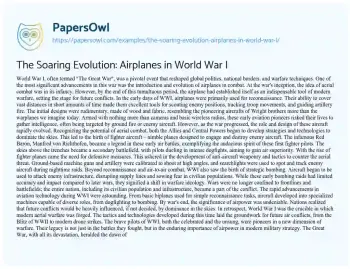 The Soaring Evolution: Airplanes in World War I. (2023, Oct 26). Retrieved from https://hub.papersowl.com/examples/the-soaring-evolution-airplanes-in-world-war-i/