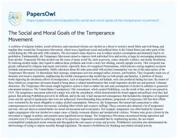 Fundamentally, the Temperance Movement aimed to improve both individual lives and society at large by encouraging abstinence from alcohol.