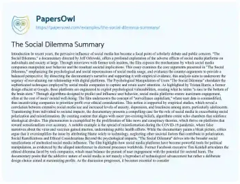 The Social Dilemma Summary. (2024, Dec 27). Retrieved from https://hub.papersowl.com/examples/the-social-dilemma-summary/