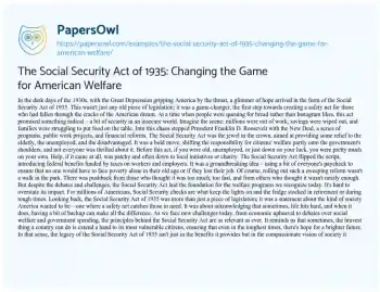 The Social Security Act of 1935: Changing the Game for American Welfare. (2024, Feb 27). Retrieved from https://hub.papersowl.com/examples/the-social-security-act-of-1935-changing-the-game-for-american-welfare/