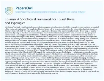 Tourism: A Sociological Framework for Tourist Roles and Typologies. (2022, Jul 05). Retrieved from https://hub.papersowl.com/examples/the-sociological-perspective-on-tourism-industry/