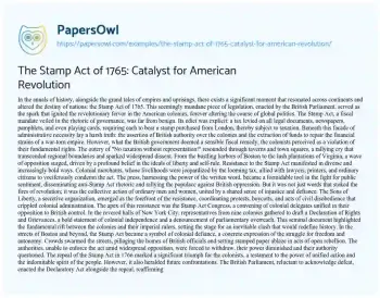 The Stamp Act of 1765: Catalyst for American Revolution. (2024, Jun 17). Retrieved from https://hub.papersowl.com/examples/the-stamp-act-of-1765-catalyst-for-american-revolution/