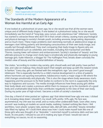 The Standards of the Modern Appearance of a Woman Are Harmful at an Early Age. (2022, Aug 27). Retrieved from https://hub.papersowl.com/examples/the-standards-of-the-modern-appearance-of-a-woman-are-harmful-at-an-early-age/