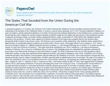 The States That Seceded from the Union During the American Civil War. (2024, May 28). Retrieved from https://hub.papersowl.com/examples/the-states-that-seceded-from-the-union-during-the-american-civil-war/