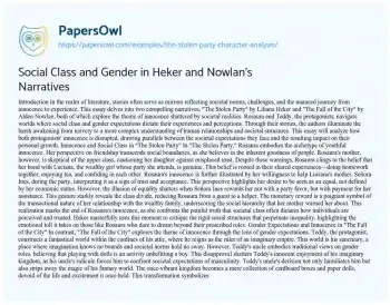 Social Class and Gender in Heker and Nowlan’s Narratives. (2021, May 09). Retrieved from https://hub.papersowl.com/examples/the-stolen-party-character-analysis/