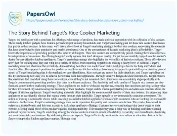 The Story Behind Target's Rice Cooker Marketing. (2023, Dec 01). Retrieved from https://hub.papersowl.com/examples/the-story-behind-targets-rice-cooker-marketing/