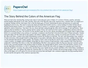The Story Behind the Colors of the American Flag. (2024, Feb 27). Retrieved from https://hub.papersowl.com/examples/the-story-behind-the-colors-of-the-american-flag/