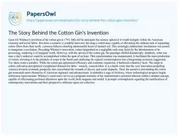 The Story Behind the Cotton Gin's Invention. (2024, Mar 18). Retrieved from https://hub.papersowl.com/examples/the-story-behind-the-cotton-gins-invention/