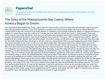 The Story of the Massachusetts Bay Colony: Where America Began to Dream. (2024, Mar 01). Retrieved from https://hub.papersowl.com/examples/the-story-of-the-massachusetts-bay-colony-where-america-began-to-dream/