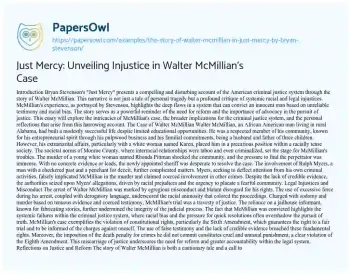 This essay will provide an in-depth look at Walter McMillian’s story as depicted in “Just Mercy.” It will discuss his wrongful conviction, the legal battle for his exoneration, and the broader implications of his case. PapersOwl offers a variety of free essay examples on the topic of Just Mercy.