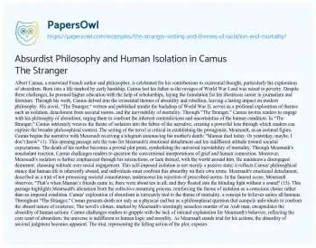 Absurdist Philosophy and Human Isolation in Camus The Stranger. (2023, Aug 13). Retrieved from https://hub.papersowl.com/examples/the-stranger-setting-and-themes-of-isolation-and-mortality/