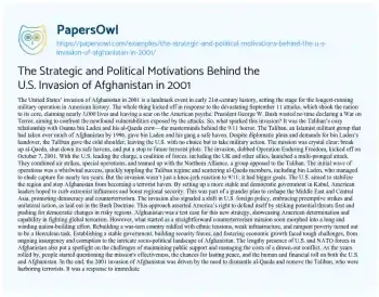 The Strategic and Political Motivations Behind the U.S. Invasion of Afghanistan in 2001. (2024, Jul 21). Retrieved from https://hub.papersowl.com/examples/the-strategic-and-political-motivations-behind-the-u-s-invasion-of-afghanistan-in-2001/