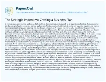 The Strategic Imperative: Crafting a Business Plan. (2024, Mar 02). Retrieved from https://hub.papersowl.com/examples/the-strategic-imperative-crafting-a-business-plan/