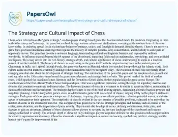 The Strategy and Cultural Impact of Chess. (2025, Mar 27). Retrieved from https://hub.papersowl.com/examples/the-strategy-and-cultural-impact-of-chess/