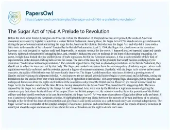 The Sugar Act of 1764: A Prelude to Revolution. (2024, Jan 26). Retrieved from https://hub.papersowl.com/examples/the-sugar-act-of-1764-a-prelude-to-revolution/