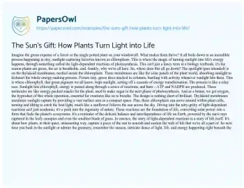 The Sun's Gift: How Plants Turn Light into Life. (2024, Feb 27). Retrieved from https://hub.papersowl.com/examples/the-suns-gift-how-plants-turn-light-into-life/