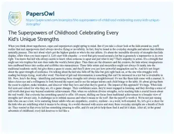 The Superpowers of Childhood: Celebrating Every Kid's Unique Strengths. (2023, Dec 15). Retrieved from https://hub.papersowl.com/examples/the-superpowers-of-childhood-celebrating-every-kids-unique-strengths/