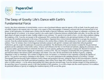 The Sway of Gravity: Life's Dance with Earth's Fundamental Force. (2024, Mar 01). Retrieved from https://hub.papersowl.com/examples/the-sway-of-gravity-lifes-dance-with-earths-fundamental-force/