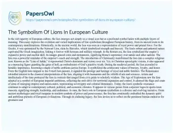 The Symbolism Of Lions In European Culture. (2024, Apr 22). Retrieved from https://hub.papersowl.com/examples/the-symbolism-of-lions-in-european-culture/