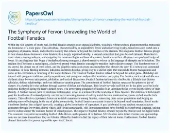 The Symphony of Fervor: Unraveling the World of Football Fanatics. (2024, Jan 26). Retrieved from https://hub.papersowl.com/examples/the-symphony-of-fervor-unraveling-the-world-of-football-fanatics/