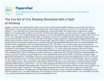 The Tea Act of 1773: Brewing Revolution with a Dash of Alchemy. (2024, Jun 17). Retrieved from https://hub.papersowl.com/examples/the-tea-act-of-1773-brewing-revolution-with-a-dash-of-alchemy/