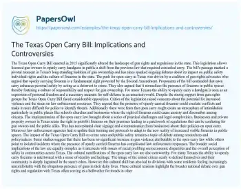 The Texas Open Carry Bill: Implications and Controversies. (2024, Jul 06). Retrieved from https://hub.papersowl.com/examples/the-texas-open-carry-bill-implications-and-controversies/