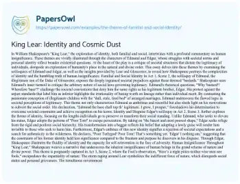 King Lear: Identity and Cosmic Dust. (2021, May 17). Retrieved from https://hub.papersowl.com/examples/the-theme-of-familial-and-social-identity/