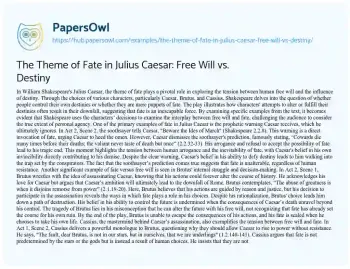 The Theme of Fate in Julius Caesar: Free Will vs. Destiny