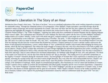 Women's Liberation in The Story of an Hour. (2022, Jun 28). Retrieved from https://hub.papersowl.com/examples/the-theme-of-freedom-in-the-story-of-an-hour-by-kate-chopin/