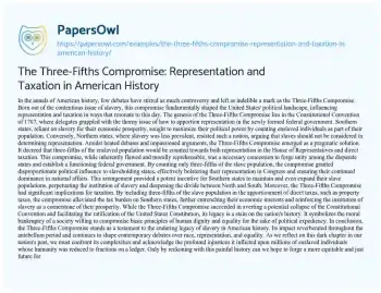 The Three-Fifths Compromise: Representation and Taxation in American History. (2024, Mar 02). Retrieved from https://hub.papersowl.com/examples/the-three-fifths-compromise-representation-and-taxation-in-american-history/