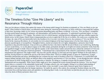 The Timeless Echo: "Give Me Liberty" and its Resonance Through History. (2023, Oct 26). Retrieved from https://hub.papersowl.com/examples/the-timeless-echo-give-me-liberty-and-its-resonance-through-history/