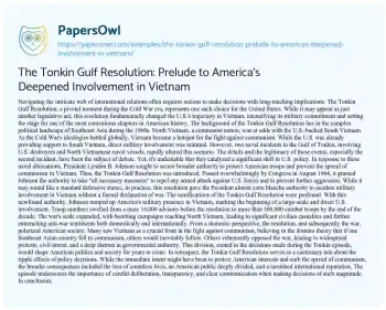 The Tonkin Gulf Resolution: Prelude to America's Deepened Involvement in Vietnam. (2023, Oct 26). Retrieved from https://hub.papersowl.com/examples/the-tonkin-gulf-resolution-prelude-to-americas-deepened-involvement-in-vietnam/
