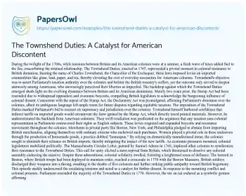 The Townshend Duties: A Catalyst for American Discontent. (2024, May 21). Retrieved from https://hub.papersowl.com/examples/the-townshend-duties-a-catalyst-for-american-discontent/
