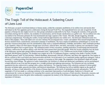 The Tragic Toll of the Holocaust: A Sobering Count of Lives Lost. (2024, May 28). Retrieved from https://hub.papersowl.com/examples/the-tragic-toll-of-the-holocaust-a-sobering-count-of-lives-lost/