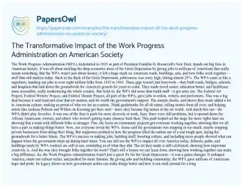 The Transformative Impact of the Work Progress Administration on American Society. (2024, Jul 16). Retrieved from https://hub.papersowl.com/examples/the-transformative-impact-of-the-work-progress-administration-on-american-society/
