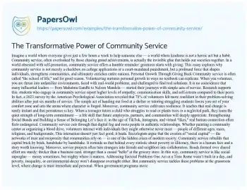 The Transformative Power of Community Service. (2025, May 22). Retrieved from https://hub.papersowl.com/examples/the-transformative-power-of-community-service/