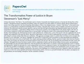 The Transformative Power of Justice in Bryan Stevenson's "Just Mercy". (2024, Jun 17). Retrieved from https://hub.papersowl.com/examples/the-transformative-power-of-justice-in-bryan-stevensons-just-mercy/