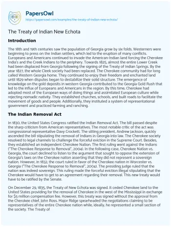 The Treaty of Indian New Echota. (2021, May 10). Retrieved from https://hub.papersowl.com/examples/the-treaty-of-indian-new-echota/