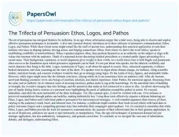 The Trifecta of Persuasion: Ethos, Logos, and Pathos. (2023, Dec 04). Retrieved from https://hub.papersowl.com/examples/the-trifecta-of-persuasion-ethos-logos-and-pathos/