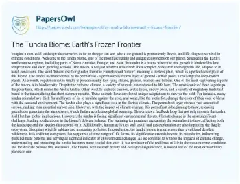 The Tundra Biome: Earth's Frozen Frontier. (2024, Jan 26). Retrieved from https://hub.papersowl.com/examples/the-tundra-biome-earths-frozen-frontier/