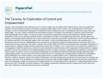 The Tyranny: An Exploration of Control and Empowerment. (2024, Mar 18). Retrieved from https://hub.papersowl.com/examples/the-tyranny-an-exploration-of-control-and-empowerment/