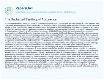 The Uncharted Territory of Abstinence. (2024, Mar 12). Retrieved from https://hub.papersowl.com/examples/the-uncharted-territory-of-abstinence/