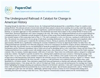 The Underground Railroad: A Catalyst for Change in American History. (2021, Apr 10). Retrieved from https://hub.papersowl.com/examples/the-underground-railroad-history/