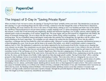 The Impact of D-Day in "Saving Private Ryan". (2023, Dec 22). Retrieved from https://hub.papersowl.com/examples/the-unflinching-grit-of-saving-private-ryans-film-d-day-scene/